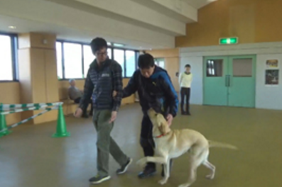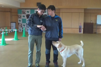 門川さん/指示を出す方法は視覚障害者の盲導犬使用と同じで音声で指示を出す方法がメインになる。僕の場合は全く聞こえないし、指示語がちゃんと出せるのか、自分も自信がなかった。