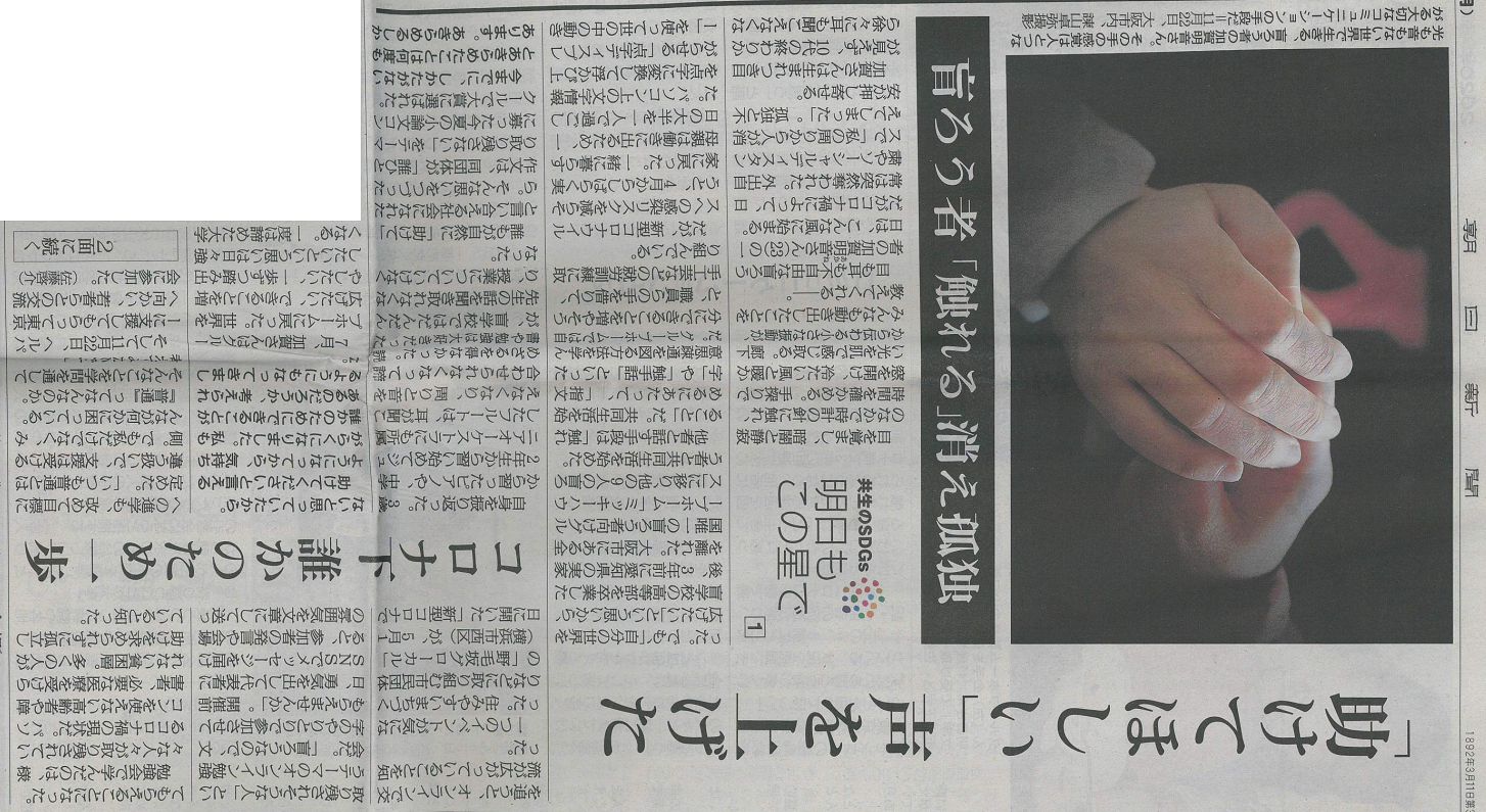 コロナウイルスのかんせんの拡大を防止するために、人と人とが距離をとるようになりました。 私は見えなくて聞こえないから、触れていなければ人がいることがわからない。 だから、私の周りから人が消えました。