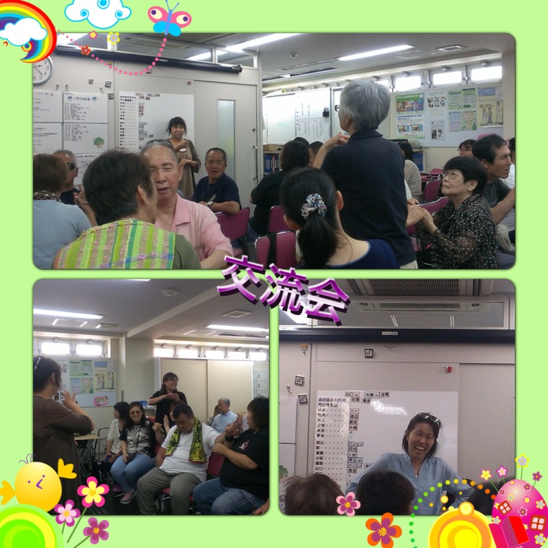 7月20日(土)三重盲ろう者きらりの会の方々がすまいるへ来られ、交流会をしました。 午前中はすまいるのいつもの行事であるブエノスに参加して頂き、その後は皆さん一緒に昼食をとりました。