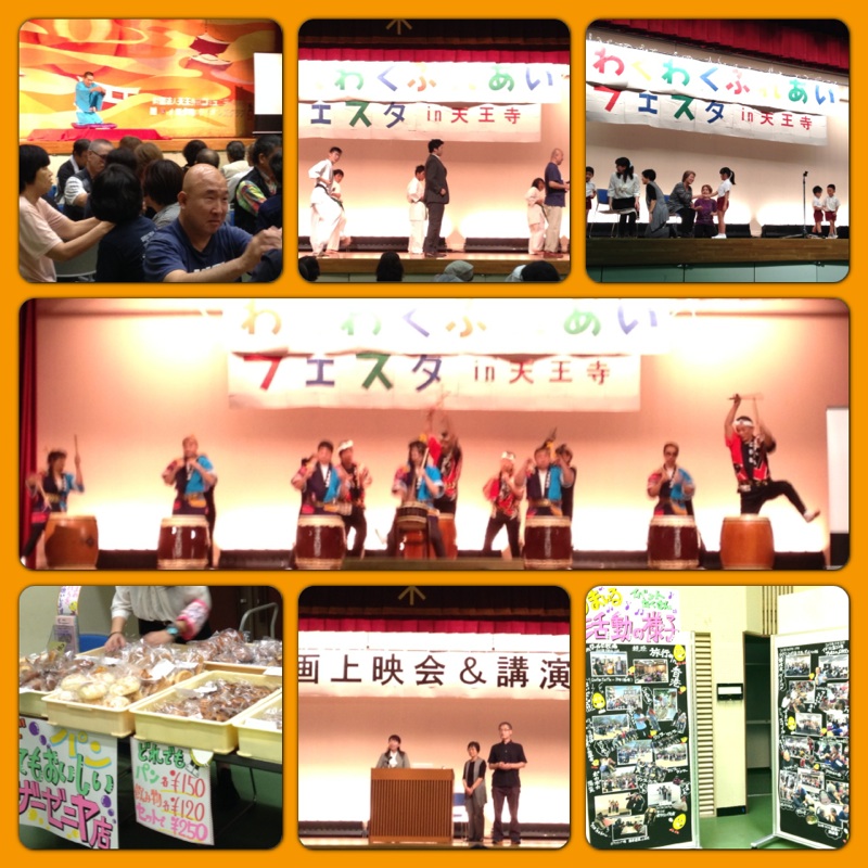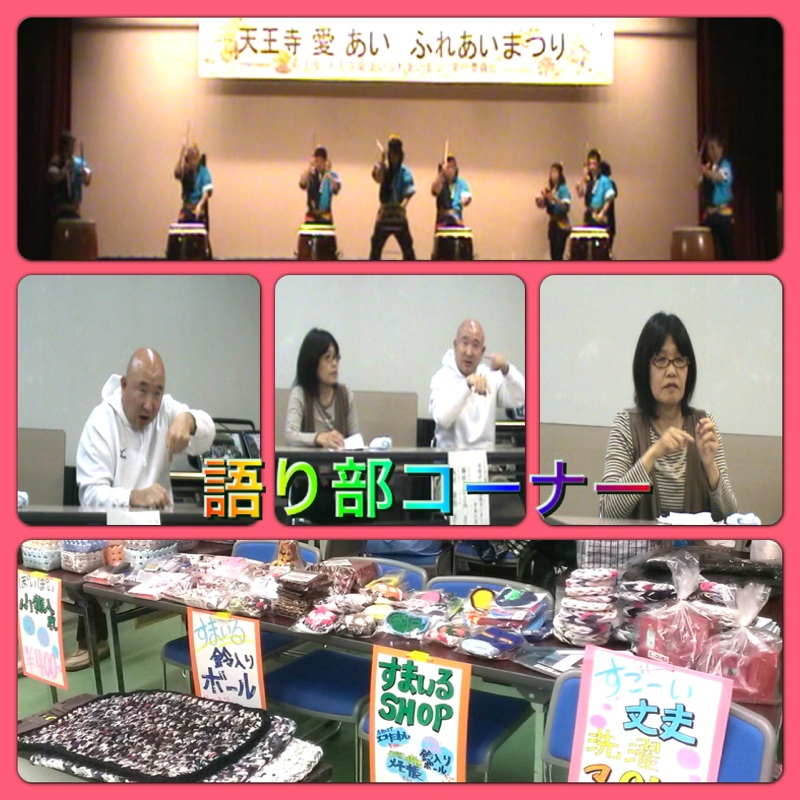 10月26日(土)、天王寺区民センターで第8回「天王寺愛あいふれあいまつり」がありました。 すまいるは、バザー、東北物産市のお手伝い、和太鼓の演奏、語り部と大忙し。