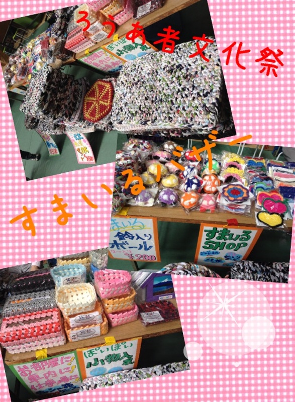 そのほかにも、小物入れや箱ティッシュ、写真立てなどの紙細工、お子さんやペット、 または手の運動にと用途も豊富な鈴入りボールなどなど。皆さんにたくさんご購入頂きました! 本当にありがとうございました。このほかにも沢山の手作り作品を作成していますので、 是非すまいるへご連絡、またはお越しください!