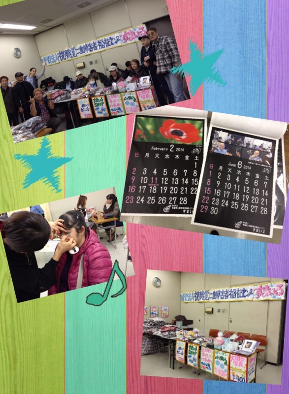 すまいるの中でもおしゃれ大好きな盲ろう者もMさんは、ネールに付けまつげをして可愛く大変身! そしてここでも勿論!すまいる新作2014年カレンダーを販売しました。弱視の方に見やすい白黒反転カレンダー。 興味のある方はすまいるまでご連絡お待ちしています!