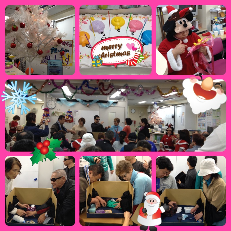 レク部のゲームでは身近にあるものを10個手探りで当て、 どれだけ記憶しているか?10個のものを発表するということ!これには盲ろう者も記憶力にあっぱれです! ゲームあり、沢山の手料理あり、ケーキあり、そしてみんながひとりひとり持ち寄ったプレゼント交換あり、 楽しい時間はあっという間に過ぎました。クリスマス会の後は、午後から続いて忘年会です! 今年のすまいるでは一日にクリスマスと忘年会がやってきます! さてさて、このあとの忘年会は・・・それはまたのブログに更新しますのでお楽しみに。