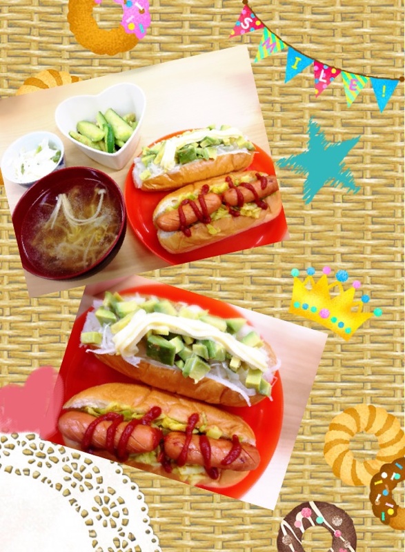 いつも美味しいすまいる給食!!7月29日(火)のメニューはなんと「ホットドッグ」。 今日はパンだけで足りるかな~?と思っていたら、なんのその! アボカドたっぷりサンドとカレー味のキャベツが入ったソーセージサンド!
