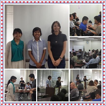 9月13日(土)13時から16時まで、「私たちが日本で学んだこと」と題した講演会を大阪市社会福祉センターで開催しました。 講師はいづれも留学生の、オーストリア出身のジャクリーンさん、ミャンマー出身のイさん、チャンさんの3人の講師です。