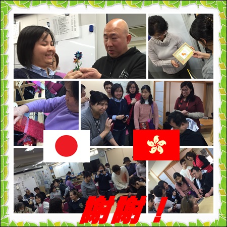 1月21日(木) Hong Kong Society for the Blind(香港盲人協会)の 方々がすまいるを訪問されました。 さおり織、紙細工、マット作り、手芸、点字機器を使用した メールのやりとり等、普段のすまいるの活動をご覧いただきました。
