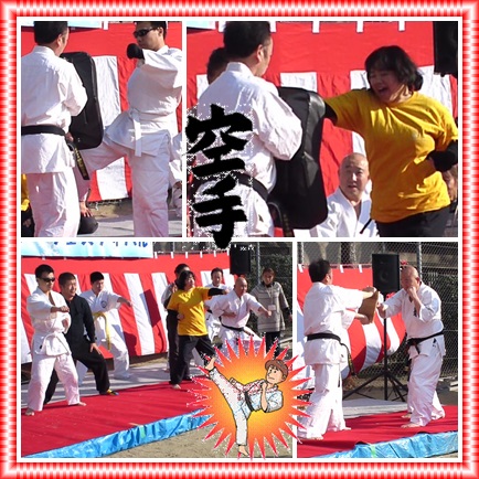 すまいるで空手を教えてくれている、日本障がい者空手道連盟の鳴瀬先生のお誘いで、舞台で空手の演武を披露。会場から驚きの声と暖かい拍手を頂きました。