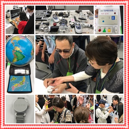 フェアでは、視覚障害者のための最新機器や便利グッズの展示販売、盲導犬体験ができるコーナーなどがあり、各ブースは大賑わい。すまいるの仲間も触って体験して、最先端のテクノロジーを肌で感じました。