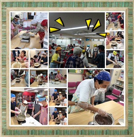 9月22日(土) すまいるで「あんみつと羊羹作り体験」をしました。各テーブルにはあんこと白玉粉が用意され、まずは羊羹作りからスタート。土鍋に寒天をいれ、あんこを少しずつ溶かしていきます。