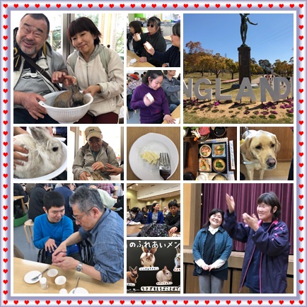 今年の交流場所は「淡路ファームパークイングランドの丘」徳島の盲ろう者7名、視覚障害者1名、その他23名の31名とすまいるの盲ろう者16名、その他25名の41名の、総勢72名でバター作り体験や動物たちとの触れ合い、ゲームや交流を楽しみました。