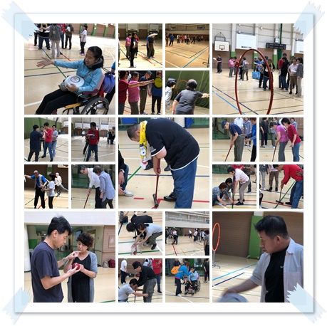 6月13日(木)、長居障がい者スポーツセンターで「ゲートボールとフライングディスク体験」をしました。午前中は各自ジムやボーリング、卓球等自由に過ごし、午後から体験です。