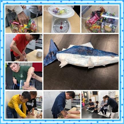 魚のゲームで使うマグロとサンマも手作りで、その出来栄えのよさに拍手喝采。ゲームは大いに盛り上がりました。