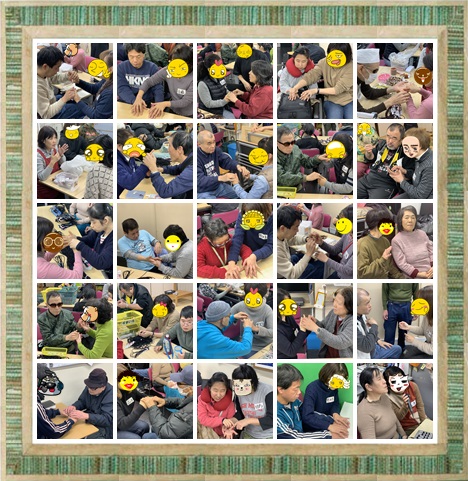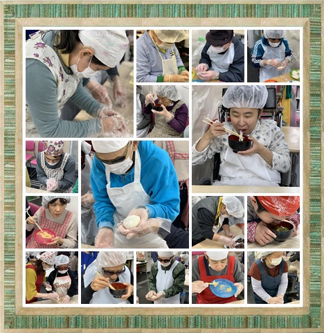 1月11日(土)「すまいる新年会」を開催しました。4つのグループに分けて、お餅を作りました。最初はあんこ餅です。あんこをボールのように丸めて50個作り、そのあんこ50個を餅の中に入れてつくります。他にも、きなこや大根おろし、雑煮、桜餅など色々な種類の餅を作って食べました。とても美味しかったです。午後、「新聞破り」というゲームを参加者全員でやりました。新聞をビリビリと早く破る人、慎重に恐る恐る破る人など破り方ひとつにしても個性が出て、見ている人も興奮するほど楽しく盛り上がれました。
