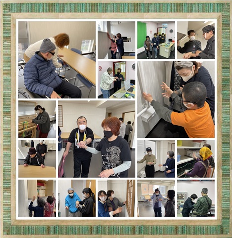 4月8日(木)、待ちに待ったすまいるの新たな活動場所、9階新フロアの見学会を行いました。盲ろう者は2班に分かれ、9階へと向かいます。