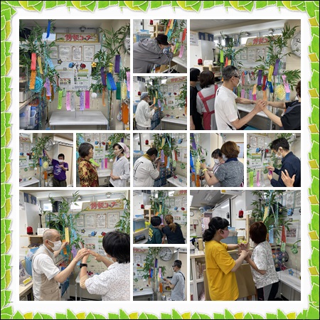 感染の終息を願う短冊や、家族、仲間の健康を願う短冊が多く飾られ、盲ろう者の皆さんは短冊の内容を通訳・介助者から聞いて、感心したり笑ったり、初めての七夕を楽しみました。
