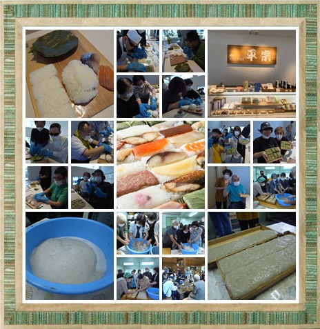 柿の葉ずし作り体験をするのは今年3月にオープンした平宗本社工場の「便利館」。中に入ると、机の上に鯖と鮭の切り身がそれぞれ4枚、柿の葉、シャリが用意されていました。作り方はとても簡単。柿の葉の上に切り身とシャリを乗せ、柿の葉で包むだけで完成です。これは時間をおいた方が美味しくなるというので持ち帰り、みなさんの晩御飯となりました。