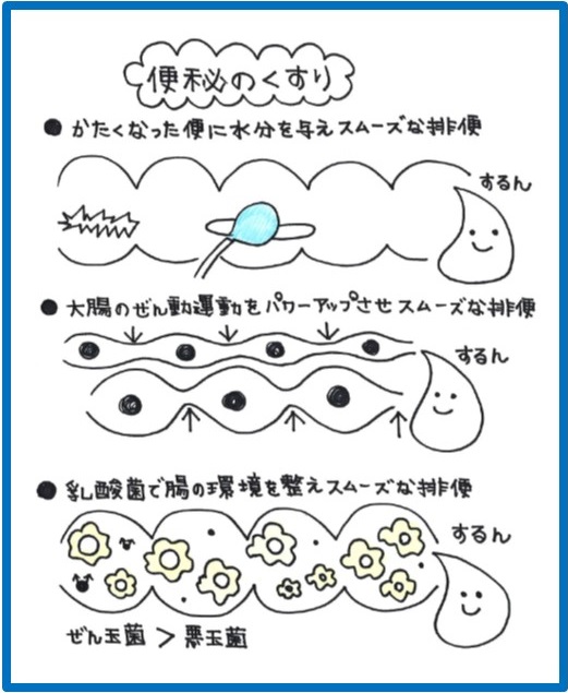 ●乳酸菌を補い、腸の環境を整える薬乳酸菌は腸の中の悪玉菌をやっつけて、腸の環境を正しい状態にします。おなかの調子を整えるので、便秘薬にも下痢止めにもなります。