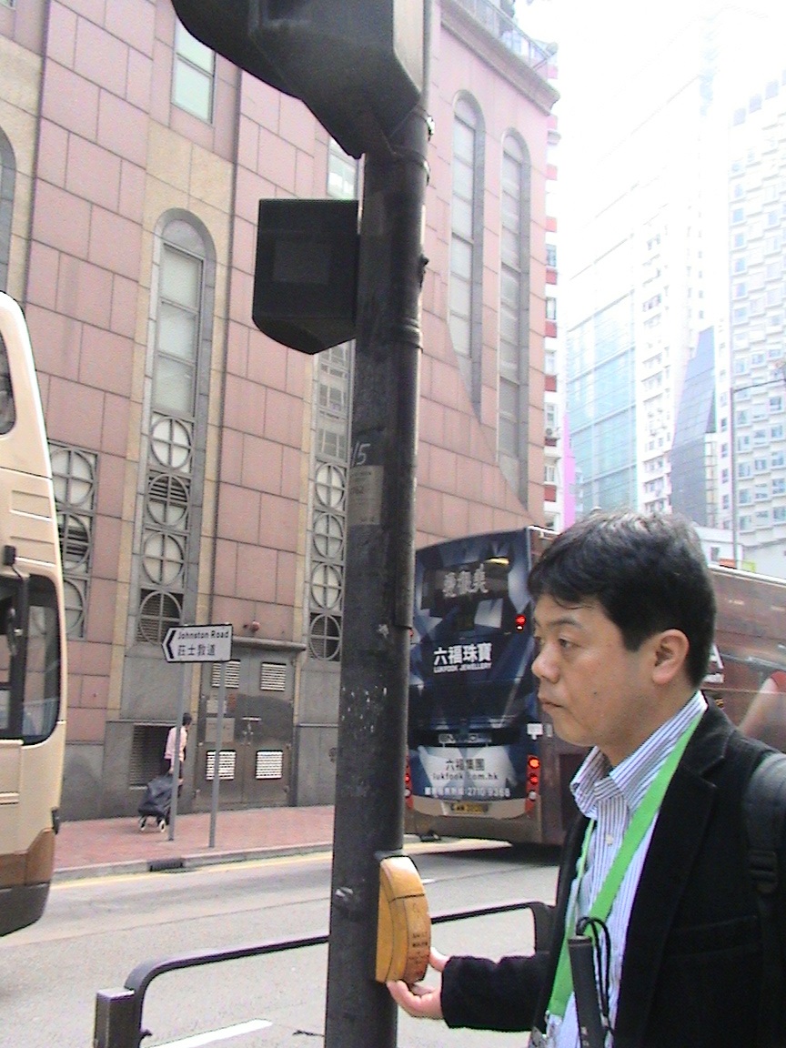 香港の街はとてもほこりっぽく、歩道もでこぼこしていたり、狭かったりと盲ろう者泣かせです。