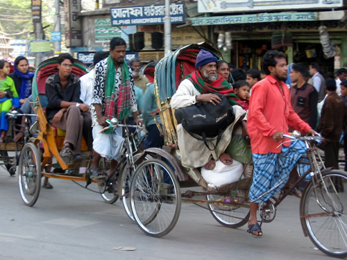 ろう協会まではリキシャという地元の乗り物を利用しました。自転車と人力車が合体したような非常に簡素な乗り物です。2~3人のお客さんを乗せて、自転車で引っ張っていきます。これがまた、ゆらりゆらり、ふわりふわりととらえどころがなく、ぶつかりそうでぶつからず、倒れそうで倒れずという絶妙なバランス。乗っている方は変な力が入って、とっても疲れました~~~